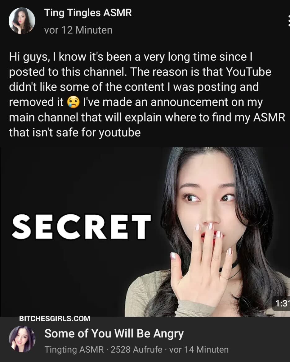 Tingting ASMR is a nude YouTube influencer creating asmr videos to help people relax and sleep. She's got 74K followers on Instagram where she posts about her asmr channel and shares nudes and underboob pics. On Twitch, she streams asmr content 24/7 and has new vids added regularly. Her fans love chatting with her in live streams. Tingting ASMR is a popular influencer known for her relaxing voice and asmr triggers. She's got a sex tape out there somewhere but it's not the main focus of her channel. On YouTube, you can find plenty of vids of her tapping on different objects, doing gentle whispers, and making soft sounds to trigger people's asmr. Her Instagram is full of nipslip moments and she's even got an asshole pose in one of her pics. If you're looking for something to help you sleep or relax, Tingting ASMR is a great choice with over 636 posts on Instagram giving Girl tingting asmr asmr mic licking videos leak. Watch at social media girl tingtingasmr is undressing her nude body on sex gallery and exposed videos leaked from from October 2025 watch for free on bitchesgirls.com. Hot tingting asmr gonewild. Tingtingasmr asmr ear eating videos. Do you know what is real name of tingting asmr?. She is definetly older than 18, but do you know what is tingtingasmr age?